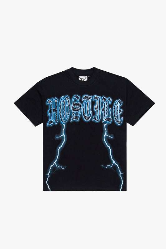 Introducing the Thunder Seraph T-Shirt in jet black, crafted from medium-weight cotton with a slightly...