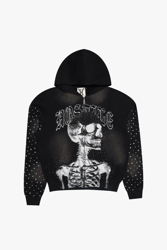 Introducing the Voidwalker Zip Hoodie in jet black, crafted from soft, medium-weight French Terry with...