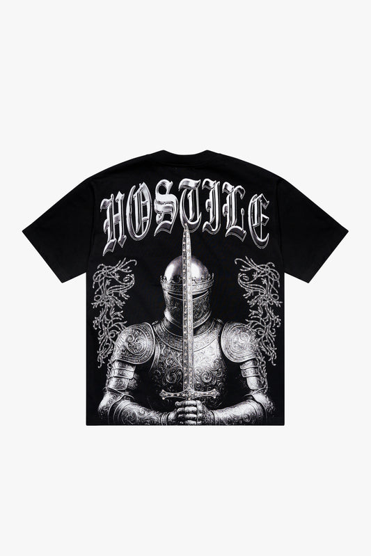 Introducing the Knightfall T-Shirt in jet black, crafted from medium-weight cotton with a slightly oversized...