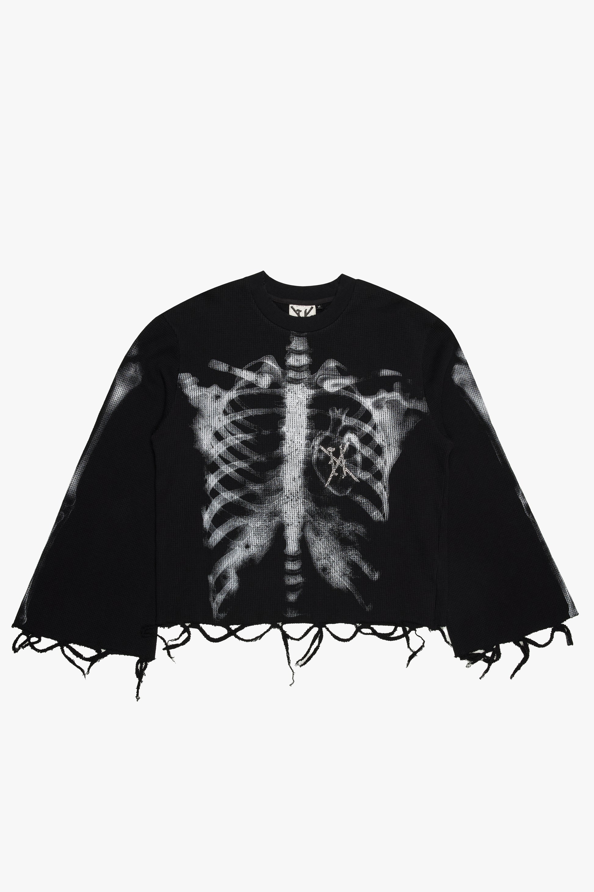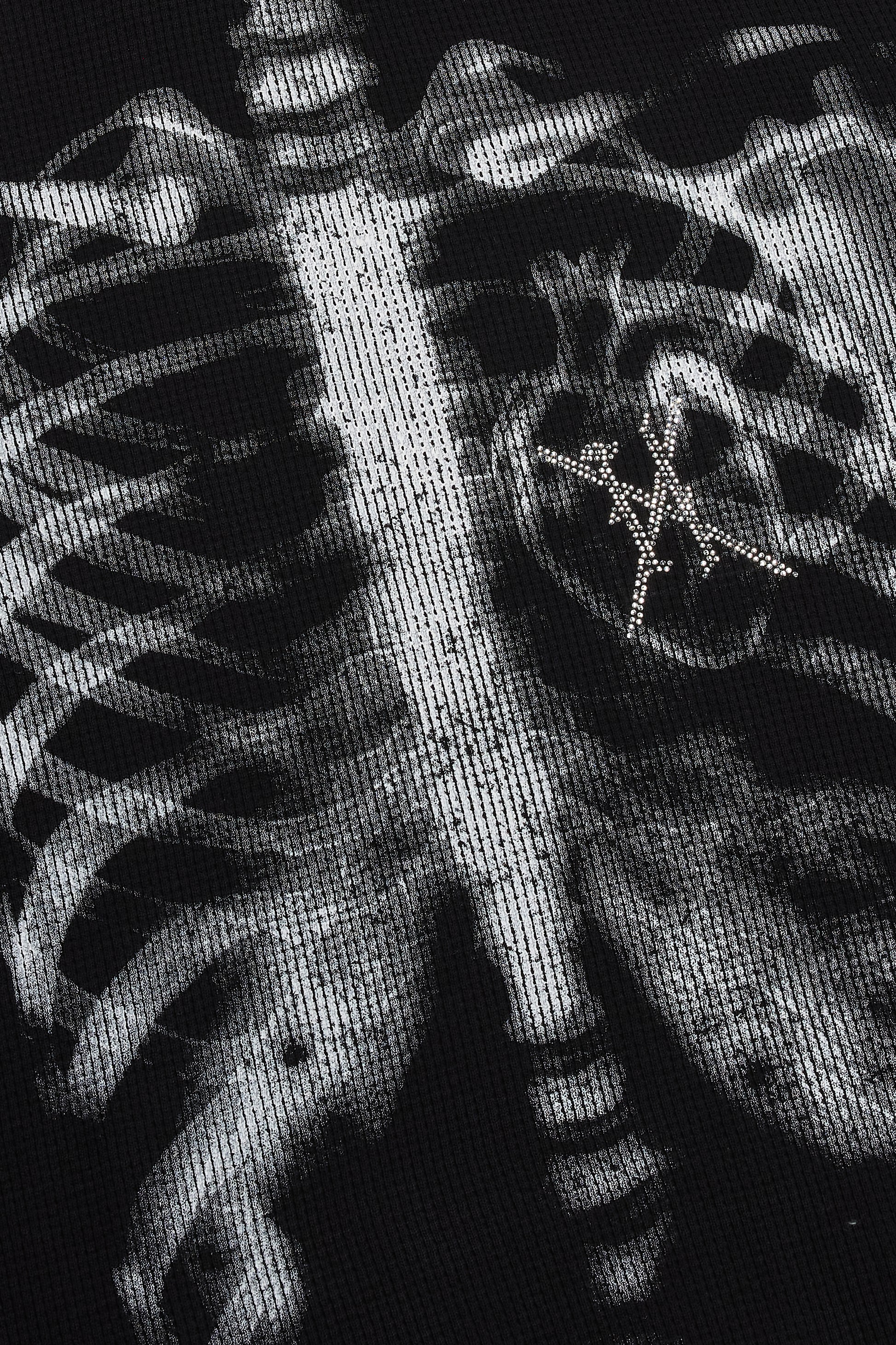 - Introducing the Anatomy Thermal in jet black, crafted from a soft, medium-weight waffle knit with a relaxed, cropped silhouette. It features our Anatomy graphic to the front, with our XHostile rhinestone logo on the chest.