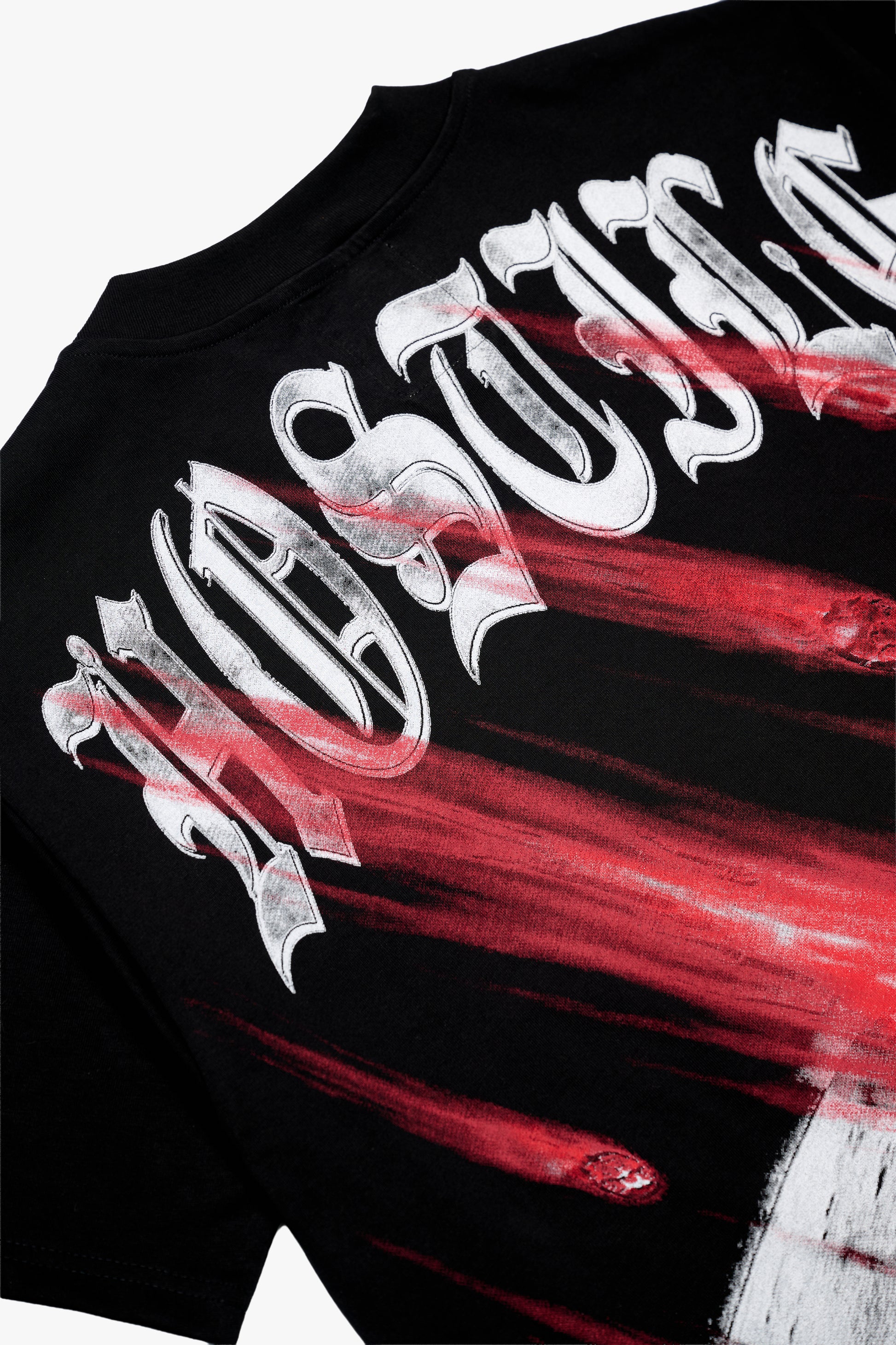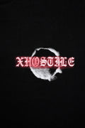 - Introducing the Extinction T-Shirt in jet black, crafted from medium-weight cotton with a slightly oversized fit. It features our red color Extinction graphic on the back, with our XHostile logo chest print.