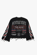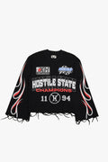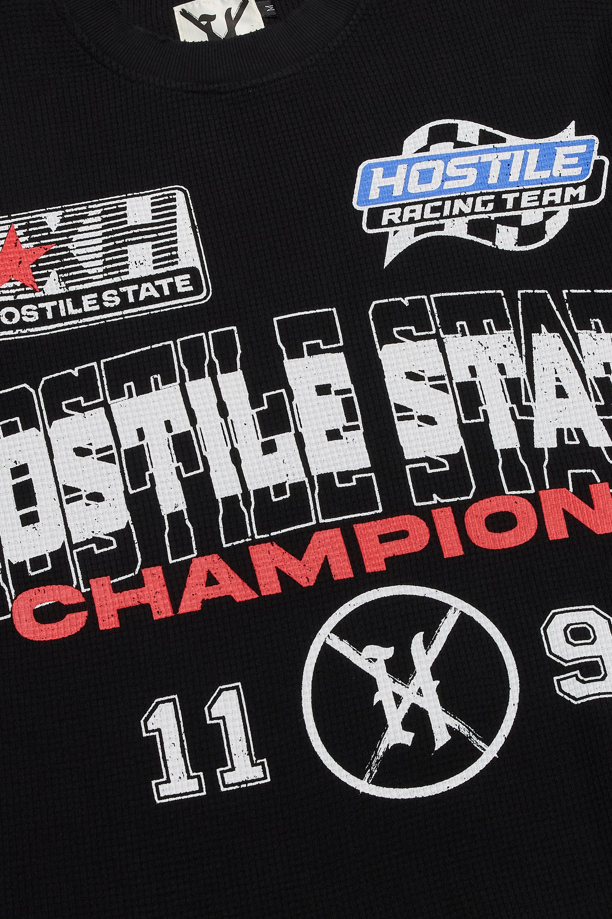 - Introducing the State Thermal in Jet black, crafted from a soft, medium-weight waffle knit with a relaxed, cropped silhouette. It features our State graphic, finished with a distressed look.